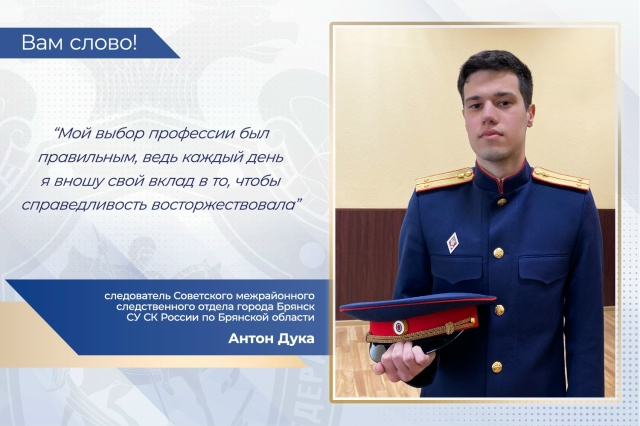 «Вам слово!». Следователь Советского межрайонного следственного отдела города Брянск СУ СК России по Брянской области Антон Дука