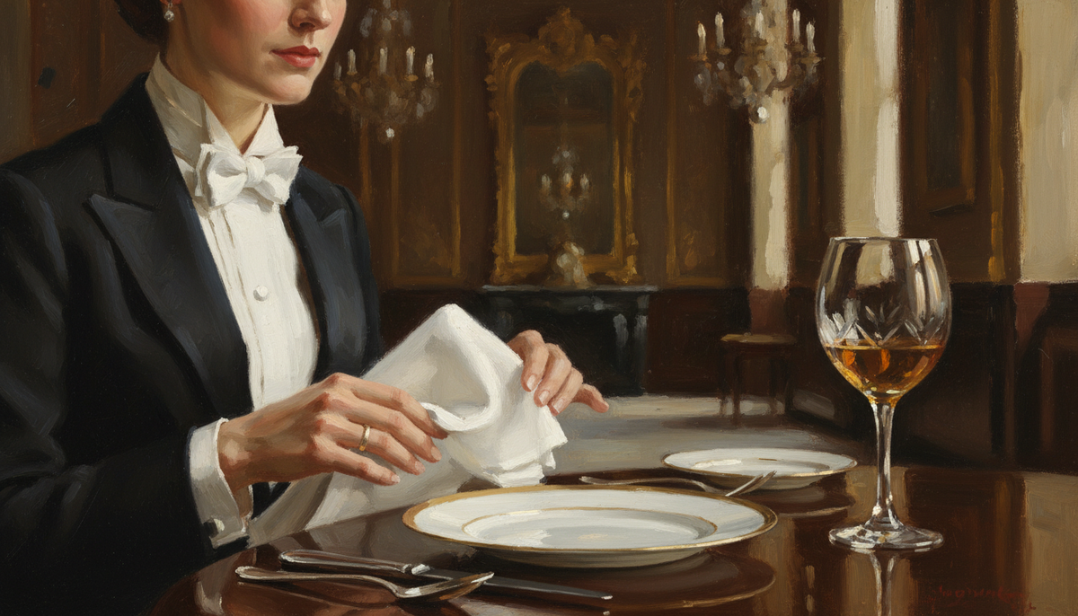 Гости тоже должны были знать правила. Салфетку разворачивали только после того, как это делал хозяин приёма. Класть её на колени следовало бесшумно, одним плавным движением. Вытирать руки разрешалось только кончиками пальцев, лёгким прикосновением. Женщины не должны были оставлять следов помады на ткани — для губ полагался отдельный платок.