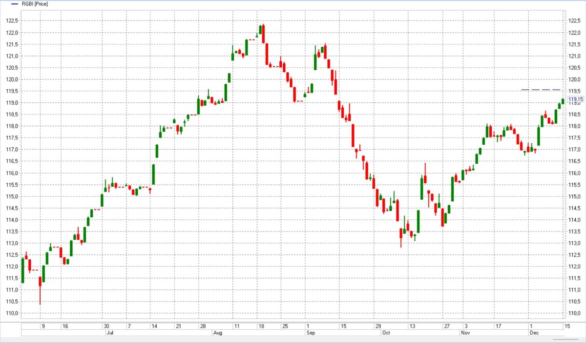 Если Индекс ОФЗ (RGBI) пробьет вверх 119,51 п., то в портфеле PRObonds ВДО сокращаем короткую позицию во фьючерсе на него с ~1,5% до 1% от активов.