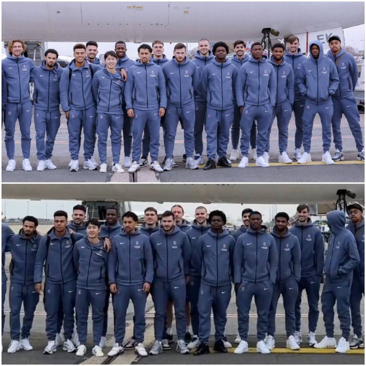 🤯 ПСЖ стёр Матвея Сафонова с командного фото перед матчем с «Фламенго» Российский вратарь присутствует на кадрах из аэропорта Катара, но стёрт с общей фотографии команды на фоне самолёта. На фото видны ноги и туловище Сафонова, стоящего за Хвичей Кварацхелией, но замазана голова. Матвей перешёл в парижский клуб летом 2024 года из «Краснодара». @russian_rt_sport