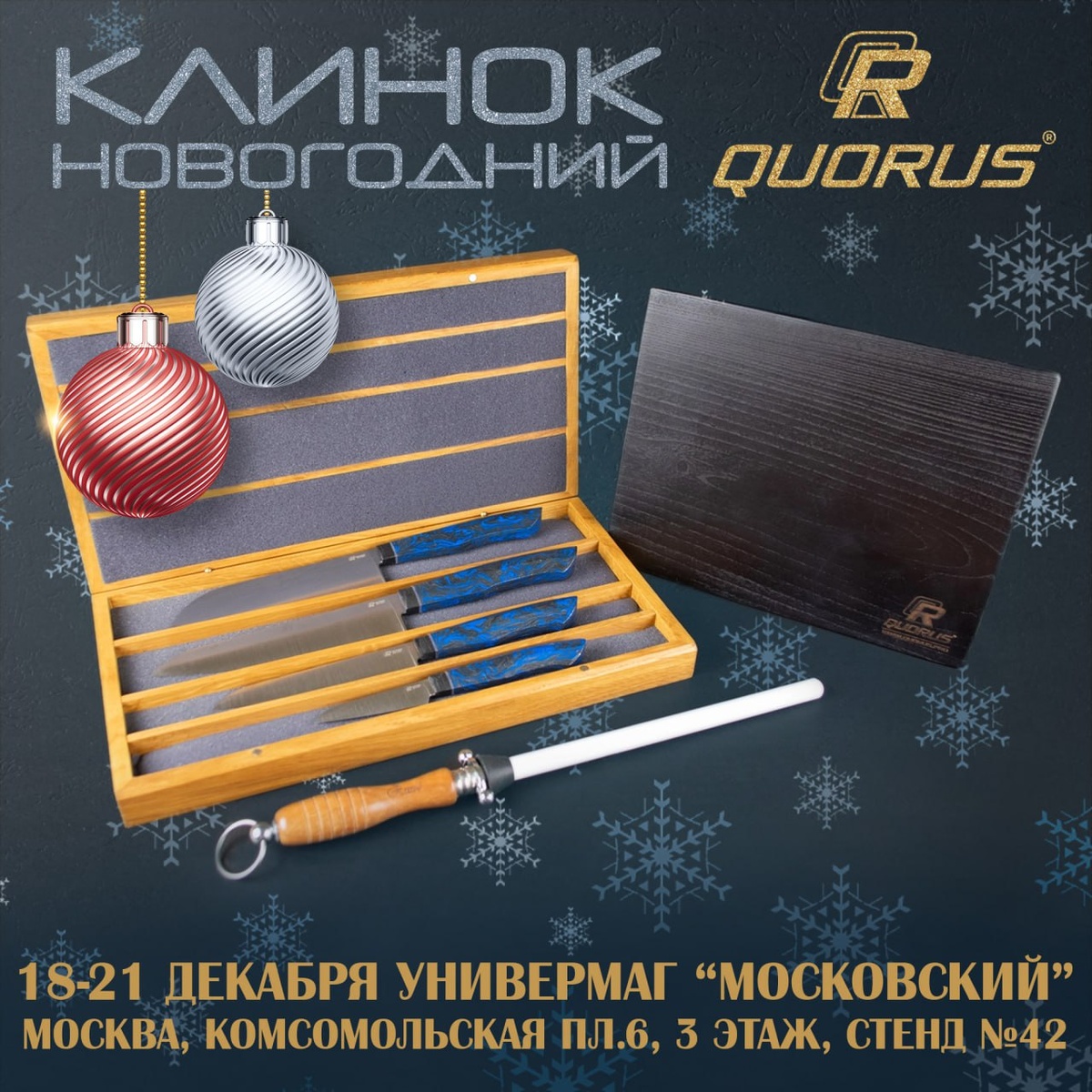 🎄 На этой неделе стартует выставка "Клинок Новогодний"! Приглашаем всех посетить наш стенд и приобрести отличные подарки для своих близких! Выставка будет проходить с 18 по 21 декабря по адресу: 📍Москва, Комсомольская пл., д. 6, 3 этаж, стенд №42 (универмаг "Московский") ⏰Время работы: 18-20 декабря: 10:00 - 19:00 21 декабря: 10:00 - 16:00 🎆Будем рады вас видеть! Поздравляем всех с наступающими новогодними праздниками!