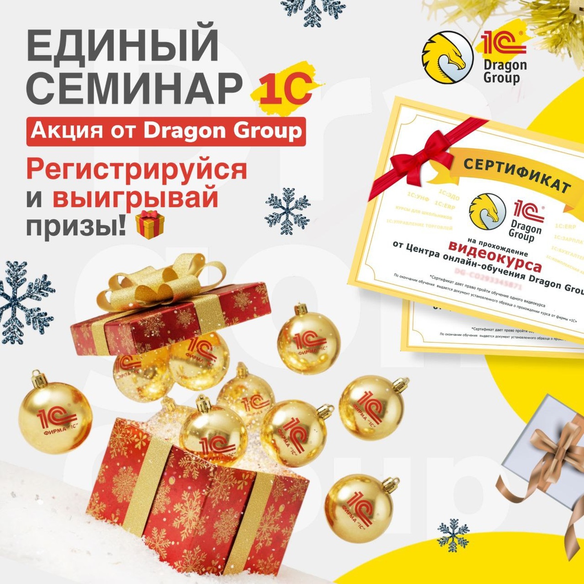 ?🧣 Новогоднего настроения, красивую ёлку, приятных сюрпризов... И уверенности, что она готова к изменениям в налогах и учёте 2026 года! Рассказываем, как встретить Новый год с уверенностью и участвовать в розыгрыше новогодних подарков от Dragon Group👇 ‼️НДС 22%, маркировка ПиОТ, налоги и учёт 2026 - как быть?‼️ 👉 Зарегистрироваться на БЕСПЛАТНЫЙ Единый онлайн-семинар 1С, где методисты и представители контрольных органов расскажут всё самое важное о грядущих изменениях 🎁Как получить заряд новогоднего позитива и подарки?☃️ 👉Среди зарегистрировавшихся на Единый семинар Dragon Group разыграет наборы ёлочных шаров с логотипом "1С", сертификаты на курсы от Учебного центра и авторские календари Dragon Group на 2026 год! Не упустите шанс узнать всё самое важное и вступить в новый отчётный период с уверенностью и позитивом🎄 🔥❄️ЗАРЕГИСТРИРОВАТЬСЯ НА ЕДИНЫЙ ОНЛАЙН-СЕМИНАР 1С❄️🔥 📌Контактная информация 📱+7(800) 770-78-03 (звонок бесплатный) 📧 office@dragon-group.ru #DragonGroup #1с