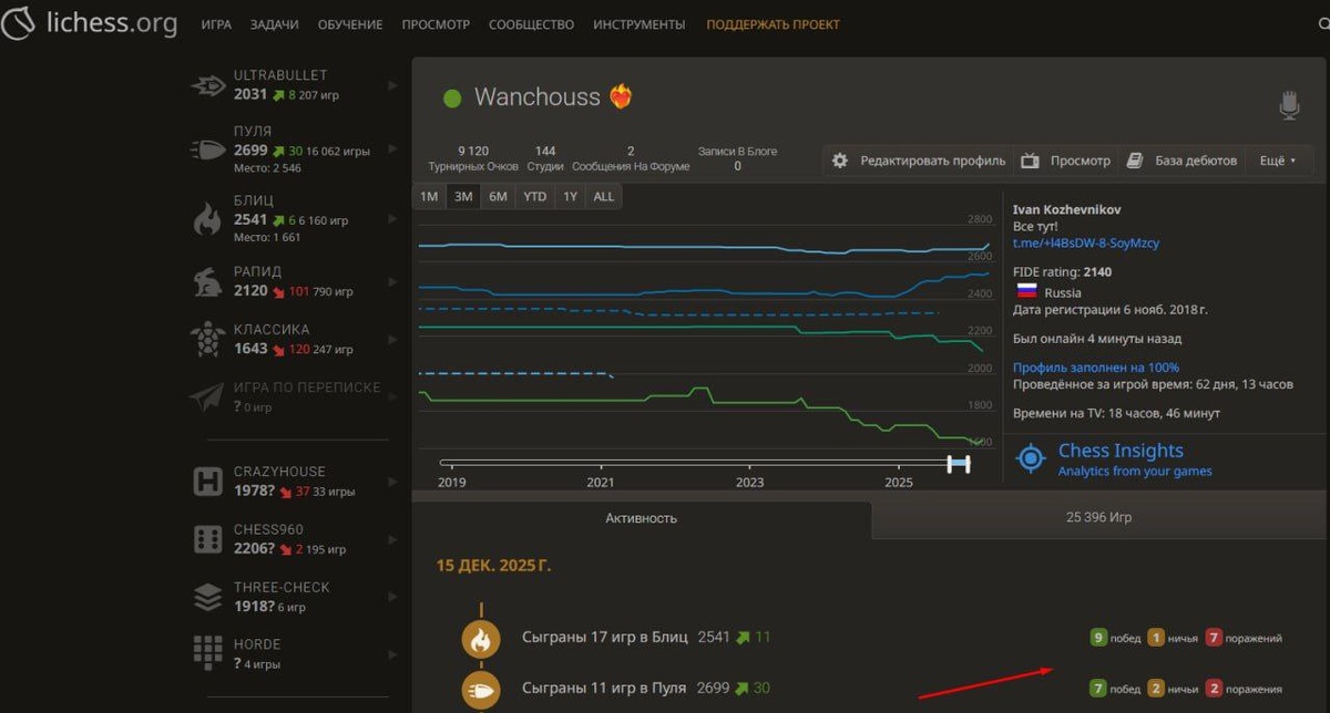 Честно, тяжело играть против 2600, сейчас был матч с Егором Ковалевым FM, мы друг друга знаем с самого детства лет с 9