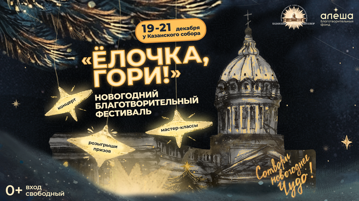 Декабрь всегда переполнен событиями. Ярмарки, концерты, огни, праздник на каждом шагу. И среди всего этого так легко пропустить главное — возможность совершить настоящее новогоднее чудо. С 19 по 21 декабря у Казанского собора пройдёт новогодний благотворительный фестиваль «Ёлочка, гори!». Это красивое мероприятие в самом сердце города и шанс спасти жизнь маленького петербуржца. Кирюше Перевозчикову всего 2 годика. У него сложный порок сердца. И собранные на фестивале средства помогут оплатить спасительную операцию для малыша. Приходите с близкими, друзьями, детьми. Здесь будет музыка, вкусная еда, горячие напитки, лотерея и атмосфера настоящего праздника. Но самое ценное — чувство, что вы стали частью чего-то по-настоящему важного. Фестиваль будут вести актёры театра и кино Валерия Посвалюк и Артём Виткалов, а значит, скучно точно не будет. Вход свободный. Приходите за новогодним настроением и оставайтесь ради чуда. Фестиваль «Ёлочка, гори!» ждёт вас у на площади Казанского собора.