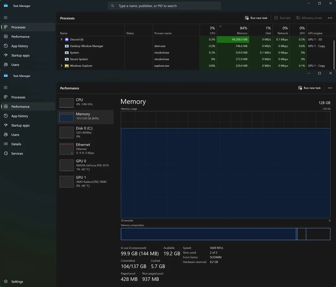 Discord может сожрать 94 гигабайта оперативной памяти скриншотом поделился пользователь Reddit