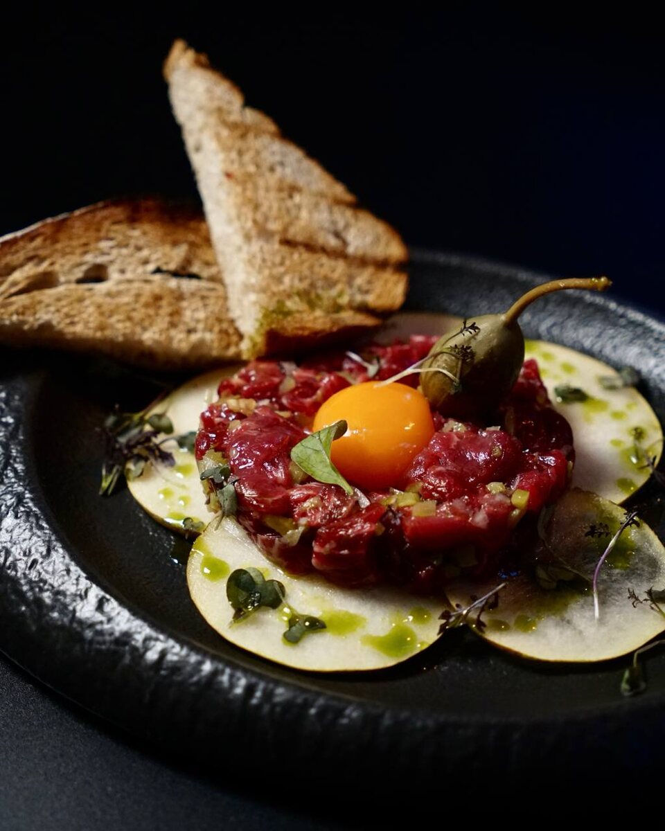 Наш новый тар-тар — это свежесть вырезки, хруст ялтинского лука, нежность груши и глубина трюфеля. Идеальное удовольствие доступное уже сейчас 🩶 Забронировать столик: 790-900