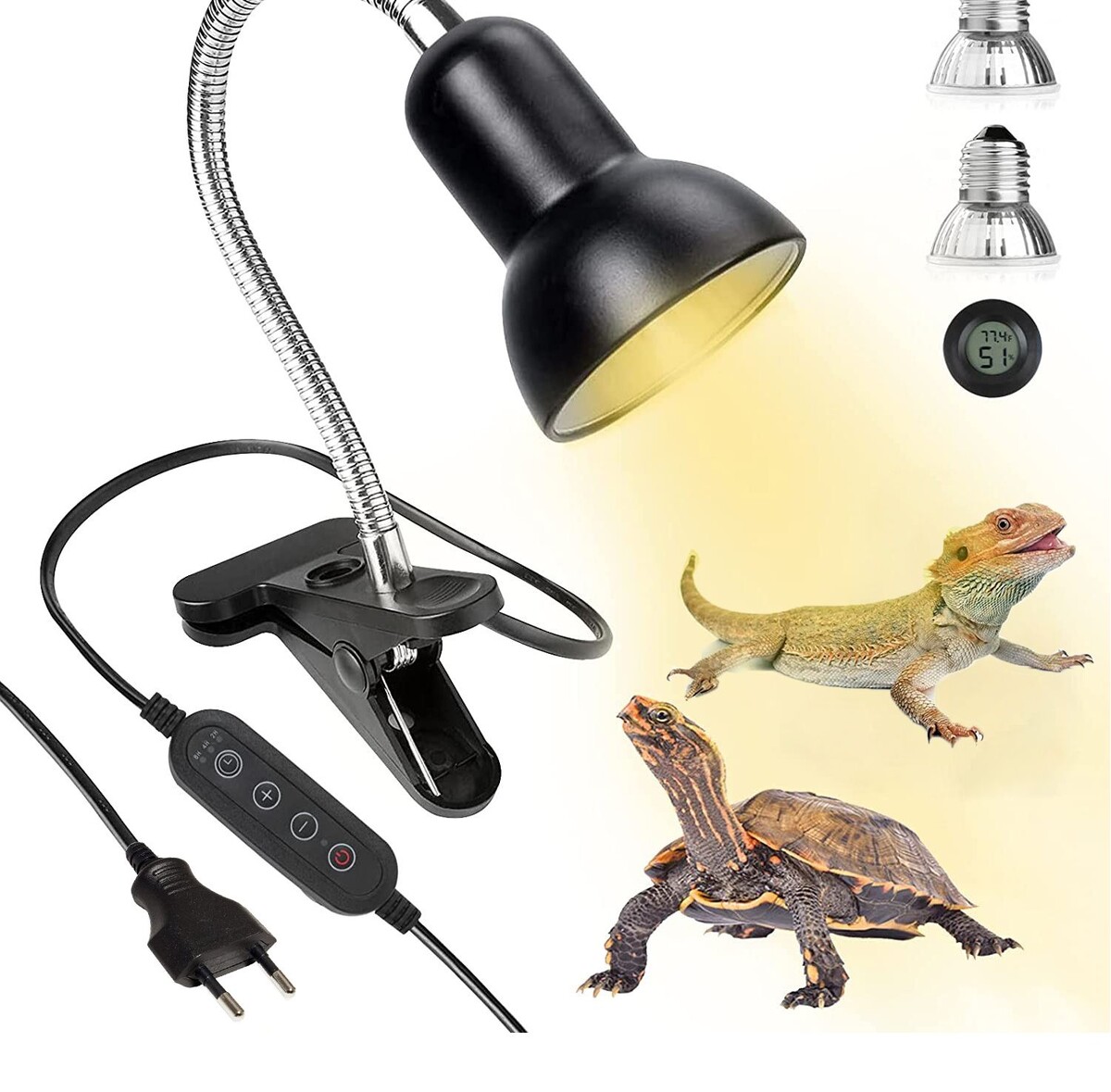 - Комбинация приборов. Чаще всего для создания идеальных условий нужна комбинация: лампа накаливания или керамический излучатель для тепла + UVB-лампа для ультрафиолета + терморегулятор для контроля.