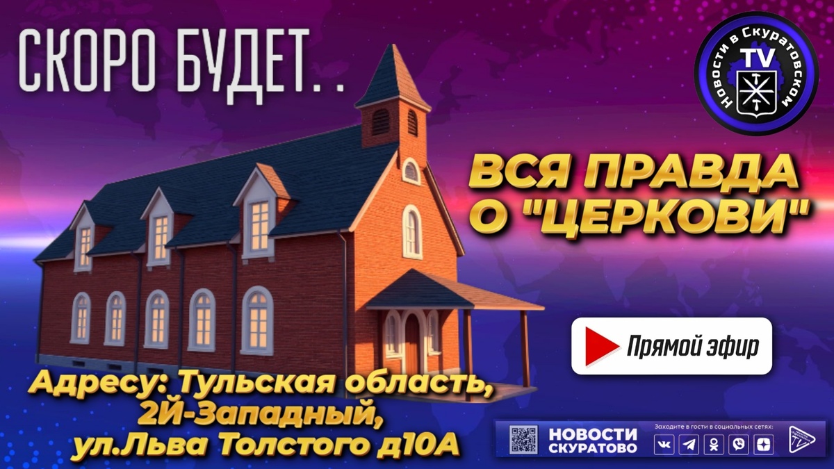 Скоро ведёт вся правда о *церковь* по Адресу: Тульская область, 2Й-Западный, ул.Льва Толстого д10А. ВЫДЕТЬ ПРЯМОЙ ЭФИР