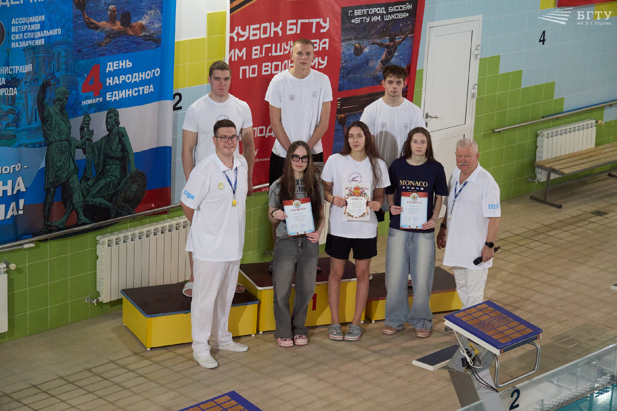 В бассейне университета состоялись традиционные соревнования в рамках 52-й Спартакиады БГТУ им. В.Г. Шухова по плаванию. Студенты девяти институтов продемонстрировали отличную спортивную подготовку, волю к победе и командный дух. В общекомандном зачёте места распределились следующим образом: 1 место – Институт информационных технологий и управляющих систем (ИИТУС); 2 место – Инженерно-строительный институт (ИСИ); 3 место – Транспортно-технологический институт (ТТИ). Далее в турнирной таблице: 4 место – Химико-технологический институт (ХТИ); 5 место – Институт технологического оборудования и машиностроения (ИТОМ); 6 место – Институт экономики и менеджмента (ИЭиМ) 7 место – Институт энергетики и электротехники (ИЭиЭ); 8 место – Архитектурный институт (АИ); 9 место – Колледж высоких технологий (КВТ). Личный зачёт среди девушек: 1 место: Коржова Валерия (ИТОМ) – 27.7 секунды 2 место: Овсянникова Алена (ИИТУС) – 29.59 секунды 3 место: Корзова Нелли (ИИТУС) – 30.64 секунды Личный зачёт с