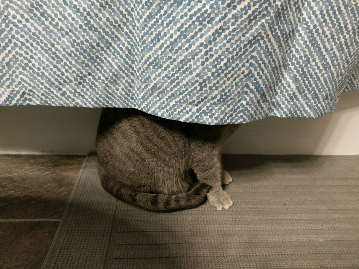 Коты – великие маскировщики, даже если ваши личные наблюдения и очевидная реальность говорят о другом. Трудности с различением кота обычного и кота притаившегося возникают у людей в связи с тем, что маскировка домашних котов часто бывает уж слишком альтернативной. Поэтому, на всякий случай, вот неочевидные признаки притаившегося кота: Он находится за каким-нибудь препятствием или в каком-нибудь укрытии (даже если оно его почти не скрывает). Он сверкает оттуда глазами, серьезно и внимательно поглядывая на вас. Он замер на месте, едва завидя вас. Например, вечером на улице: на обочине дороги или на тропинке прямо перед вами или в кустах неподалёку. В общем, замер и не двигается. Он сидит плотно прижав лапки к земле/полу (так кошки скрывают свой запах, потому что на лапках у них есть специальные пахучие железы). И если начать кискать такого кота, его взгляд становится крайне недовольным, и выходить из своего укрытия он совершенно не спешит. Почему притаившийся кот недоволен вашим