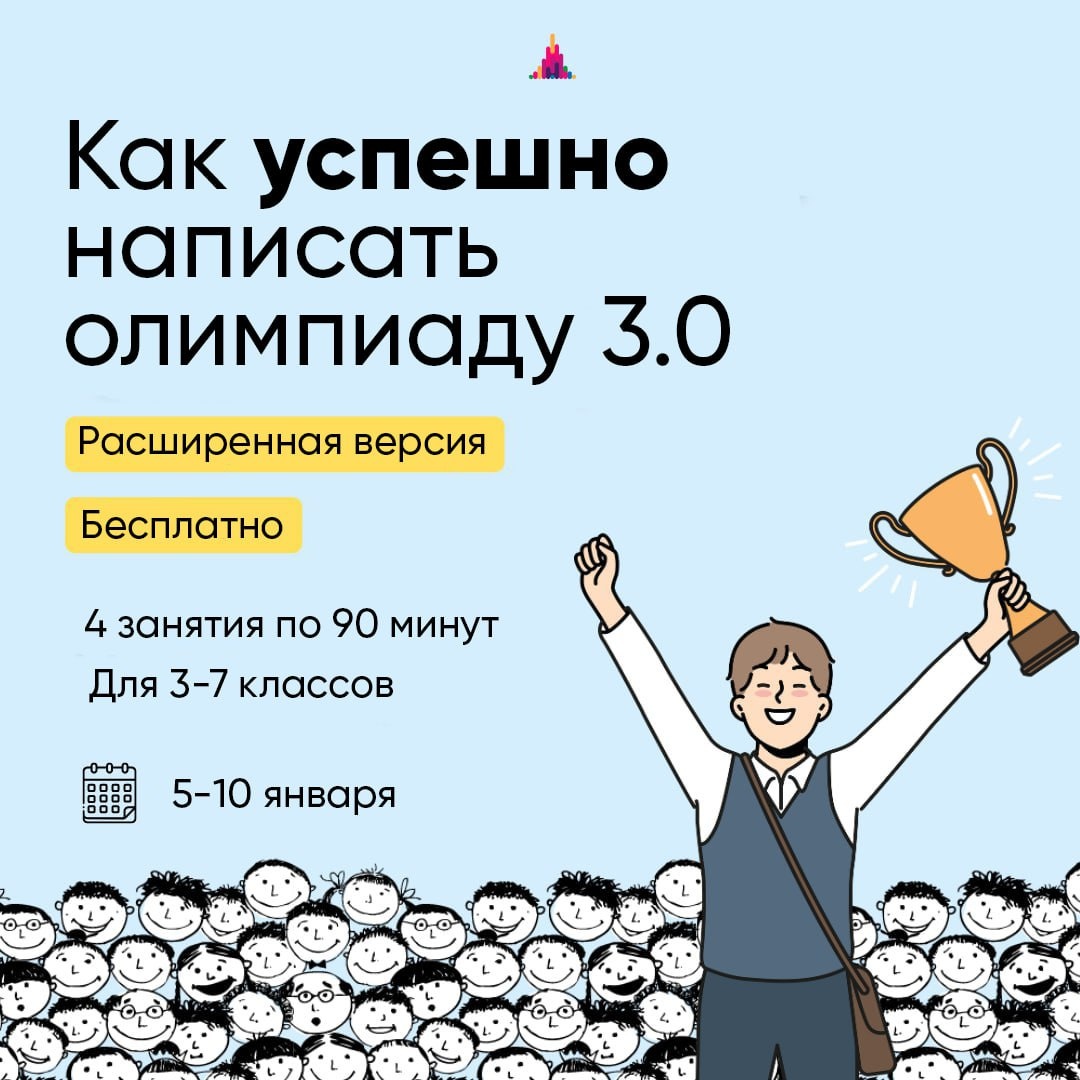 🏆 Учимся писать олимпиады и побеждать! Бесплатный курс по олимпиадной математике, расширенная версия Приглашаем учеников 3-7 классов на бесплатный курс по олимпиадной математике «Как писать олимпиаду 3.0». Это расширенная версия прошлого курса, будет повторение и новый материал, поэтому курс будет одинаково полезен и тем, кто уже его проходил, и тем, кто только планирует. Прошлый курс прошли более 1.300 человек, а мы получили 100+ восторженных отзывов. Давайте готовиться к олимпиадам вместе! 🔘Участие бесплатное, РЕГИСТРАЦИЯ ОБЯЗАТЕЛЬНА 🔘Занятия пройдут онлайн. Можно задавать вопросы 🔘Курс пройдет на каникулах, с 5 по 10 января включительно 🔘На занятиях мы разберём важные советы и лайфхаки, как писать олимпиаду по математике 🔘Обсудим основные принципы и подходы, которые встречаются во всех олимпиадах. Преподаватель — Евгений Тодоров — с 2016 года преподает олимпиадную математику и дополнительные разделы в частных и государственных школах, занимается репетиторством, готовит к