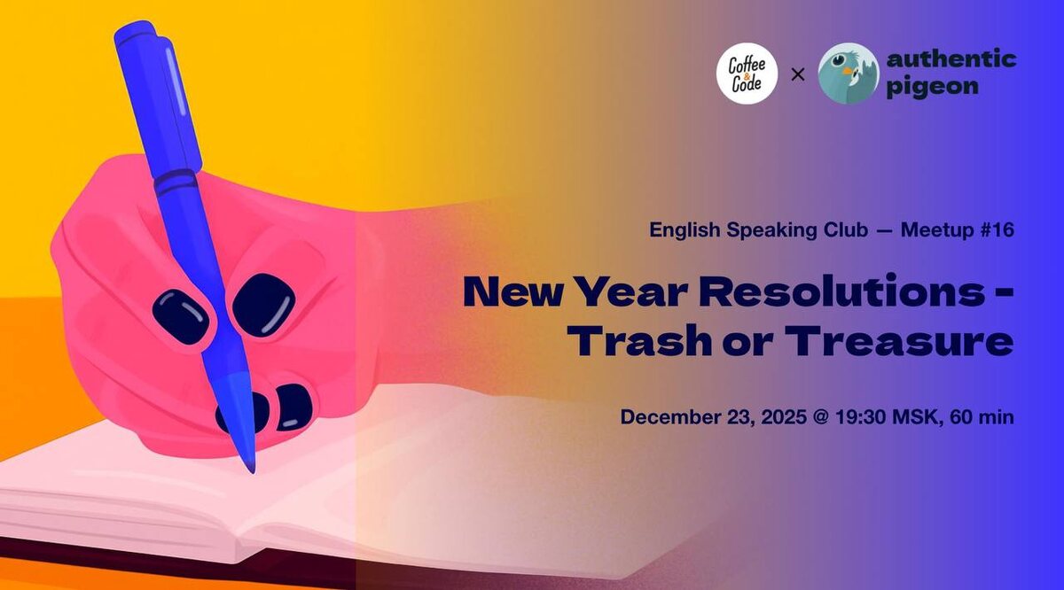 Митап №16 в онлайн-клубе английского языка Authentic Pigeon × Coffee&Code — New Year Resolutions — Trash or Treasure? 🎄📜