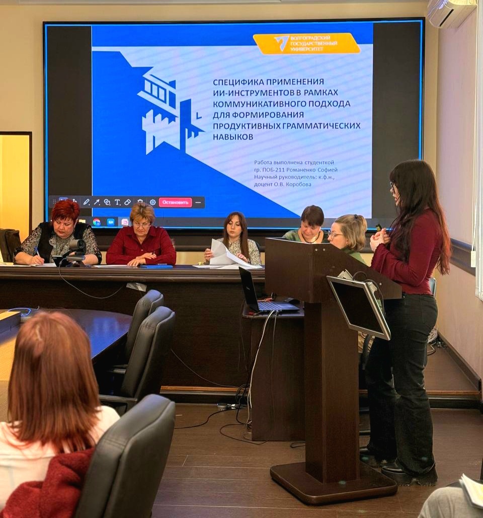 Студенты пятого курса направления подготовки Педагогическое образование (английский язык и немецкий язык) заняли призовые места в XXX Региональной конференции молодых ученых и исследователей Волгоградской области (с международным участием), проходившей на площадках нескольких вузов Волгограда. Мероприятие состоялось в рамках программы «Регион для молодых» нацпроекта «Молодежь и дети», охватило 42 направления науки и привлекло 1,5 тысячи молодых исследователей, в том числе иностранных участников. Студентки института филологии и межкультурной коммуникации ВолГУ представили свои исследования на площадке ВГСПУ. Романенко София заняла 2 место с докладом «Специфика ИИ-инструментов в рамках коммуникативного подхода для формирования продуктивных грамматических навыков». Жданова Мария заняла 3 место с докладом «Использование платформы виртуальной реальности Google Expeditions в рамках технологии CLIL для развития языковых и предметных компетенций учащихся». Экспертная комиссия под руковод