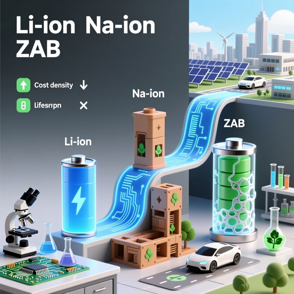 Какую батарею выбрать? Часть 4/2 Перспективы развития: от лаборатории к масштабному применению Перспективы развития и коммерциализации батарей определяются не только их внутренними технологическими характеристиками, но и внешними рыночными силами, государственной политикой и стратегическими целями по декарбонизации. Если Li-ion технологии представляют собой зрелую платформу для дальнейшего совершенствования, то Na-ion и ZAB открывают новую эру альтернативных решений, стремительно двигаясь от лабораторных разработок к первым коммерческим проектам. Литий-ионная технология, несмотря на все свои ограничения, продолжит развиваться. Основные усилия R&D направлены на преодоление ее ключевых недостатков. Одним из главных направлений является переход к твердотельным батареям, которые используют твердый электролит вместо жидкого, что должно повысить безопасность, предотвратить термический разгон и позволить достичь более высокой энергоемкости (300–500 Вт·ч/кг) и циклического срока службы (8 00