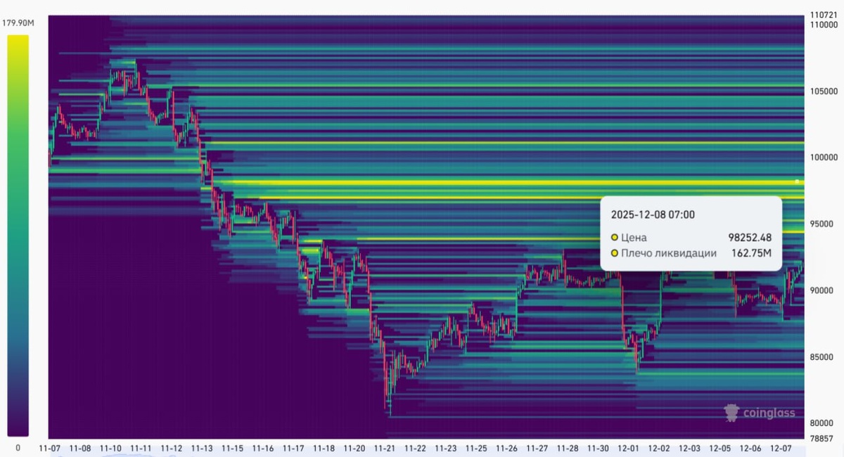 Такс, наглядно видно, что рынок хорошенько переобулся в шорт, значительные ликвидации ожидаются на уровне 98к 🧐 Сходить кольнуть на ставке
