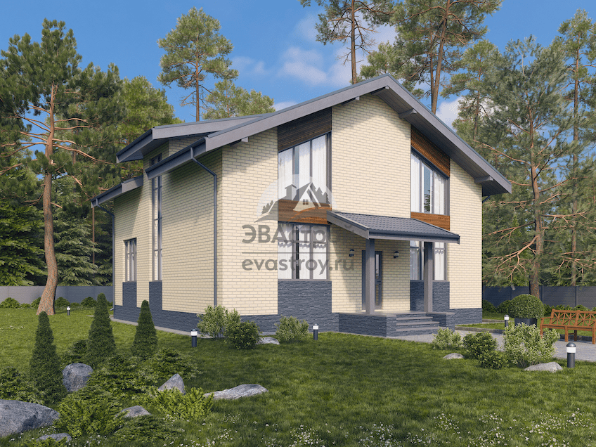 Номер проекта: П14 Разделы проекта: Архитектурный и Конструктивный разделы Узнать о проекте больше можно на сайте evastroy.ru или по телефону +7 (495) 175-30-40 Общая площадь: 211.6 м2; Габариты дома: 11.6 x 12 м; Этажность: 2; Фундамент: монолитная плита с ребрами жесткости; Материал стен: цоколь: камень декоративный; Перекрытия: перекрытие 1-го этажа – монолитная ж.б. плита; Крыша: мансарда; Кровля: металлочерепица; Фасад: штукатурка, планкен, декоративный камень; Стиль: европейский. Семейный дом должен быть вместительным и комфортным. Поэтому мансардный коттедж в европейском стиле, общей площадью 211 м2, заслуживает самого пристального внимания при выборе будущего жилища. Среди его главных особенностей: 4 спальни, в том числе двухместная гостевая; огромный санузел на верхнем ярусе; достаточно мест для хранения — общие гардеробные на каждом этаже и просторные личные шкафы; одинаковые размеры мансардных спален. Большой открытый тамбур позволяет попасть в бойлерную, гардеробную и