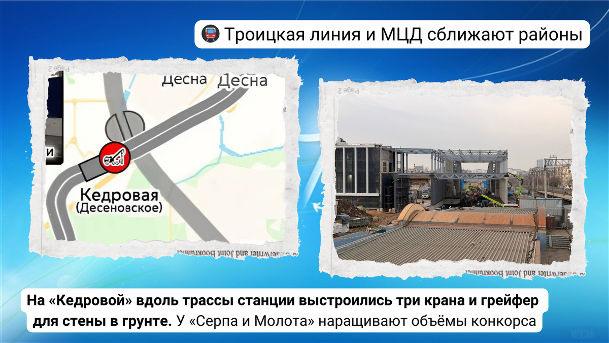 Доброго дня, дорогие москвичи и гости столицы! В раннем выпуске за 15 декабря 2025 года, по традиции, обсуждаются актуальные аспекты развития комплексной инфраструктуры Москвы (КИМ). Мы снова рассказываем просто о том, как меняется наш город и как это скажется на нас с вами. На этот раз поговорим о развитии системы МЦД и посмотрим на южный участок Троицкой линии. А вы как считаете? Заметны ли изменения в вашем районе? Пишите комментарии, обсудим. Ваше мнение для нас важно не меньше, чем официальные отчеты. Давайте вместе разберемся, что же на самом деле происходит с нашей Москвой. Поехали? Часть 1. Площадка строительства 🚇 станции «Кедровая» 🏡 Троицкой линии с оборотными тупиками Продолжается освоение территории стройплощадки 🚇 станции «Кедровая» 🏡 Троицкой линии с оборотными тупиками, вывозится грунт. Ёмкости и оборудование бентонитового узла, необходимого для устройства стены в грунте (ограждающих стен котлована будущей станции и оборотных тупиков), утеплены – подготовлены к пре