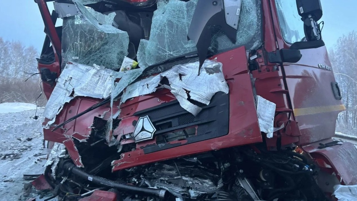 Две фуры лоб в лоб столкнулись на трассе в Новосибирской области