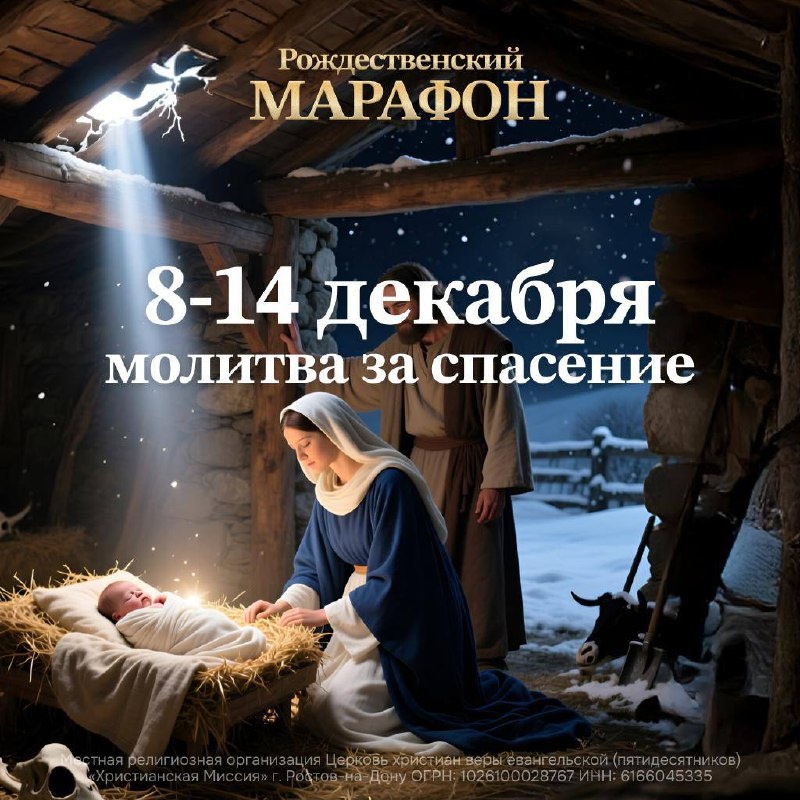 Дорогая церковь 💒 на этой неделе начинается 💫Рождественский марафон 💫 Это время когда мы будем молиться, делать добрые дела, рассказывать о Рождестве и нести свет спасения. Первая неделя нашего марафона называется «молитва за спасение» — в эти дни будем молиться за тех, в чьем сердце еще не родился Христос 🫥 Вы можете молиться самостоятельно, а также делать это в домашних группах.