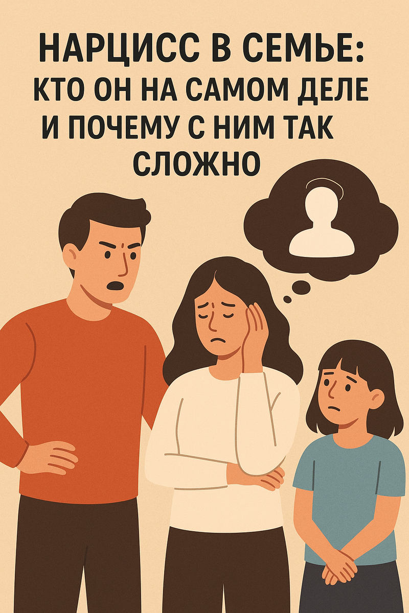 ✨ С ним бывает ярко. ✨ Сначала - внимание, уверенность, ощущение, что рядом «сильный» человек. А потом - тревога, сомнения в себе и вопрос: «Почему мне так плохо, если вроде ничего ужасного не происходит?» Во многих семьях нарцисс - не абстрактный термин из психологии, а очень конкретный человек: родитель, супруг, брат или сестра. Кто такой нарцисс на самом деле? 🪞 В быту «нарциссом» называют того, кто: всегда ставит себя в центр внимания 🌟 плохо переносит критику 🚫 хочет восхищения и признания болезненно реагирует на чужие границы Но внутри этого образа чаще всего - глубокая неуверенность, которую человек тщательно прячет. Нарциссу жизненно важно ощущать себя значимым, лучшим, правым. И если этого нет - он чувствует угрозу. Поэтому рядом с ним всегда кто-то должен быть “ниже”, “виноват”, “не такой”. Как ведёт себя нарцисс в семье? 🏠 В семейных отношениях нарцисс чаще всего: 🗣 обесценивает: «Да что ты понимаешь», «Без меня ты бы не справился(лась)» 🎭 меняет маски: на публике -