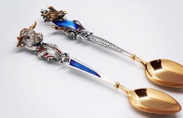 ЛОЖКИ ВАЛЕРИЯ ГОЛОВАНОВА. ЛОЖКА БЫК. Ювелирная Арт-Мастерская Валерия Голованова известна с 2000 годов своими эксклюзивными работами, особенно серебряными ложками и подстаканниками. Работы выполняются исключительно вручную, что придает жизнь каждому ювелирному изделию. Валерий Голованов - выдающийся ювелир, его работа есть в Оружейной Палате. Голованов Валерий Ювелирная Арт-Мастерская, Стоимость лота: 75 000,00 ₽ Подробнее на нашем сайте
