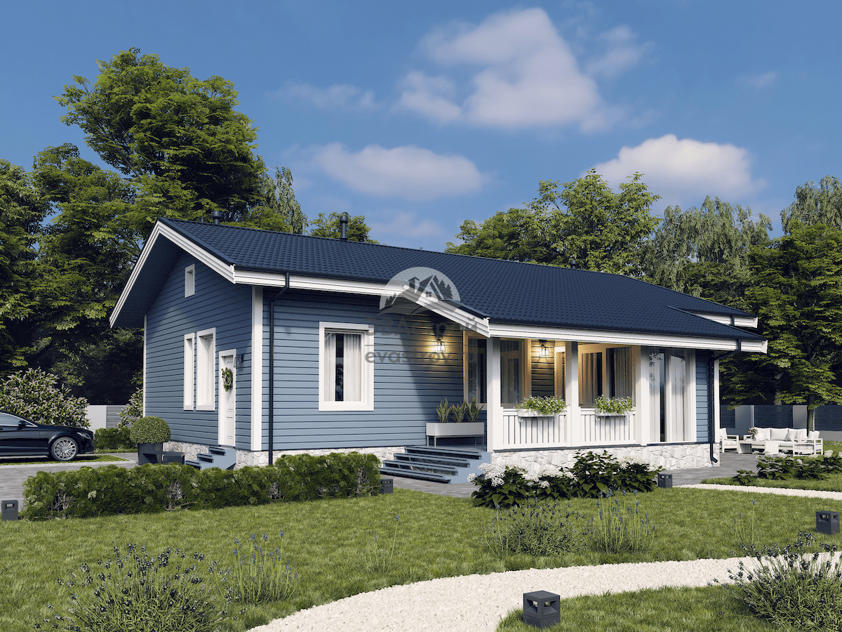 Проект одноэтажного дома из деревянного каркаса в финском стиле - П15