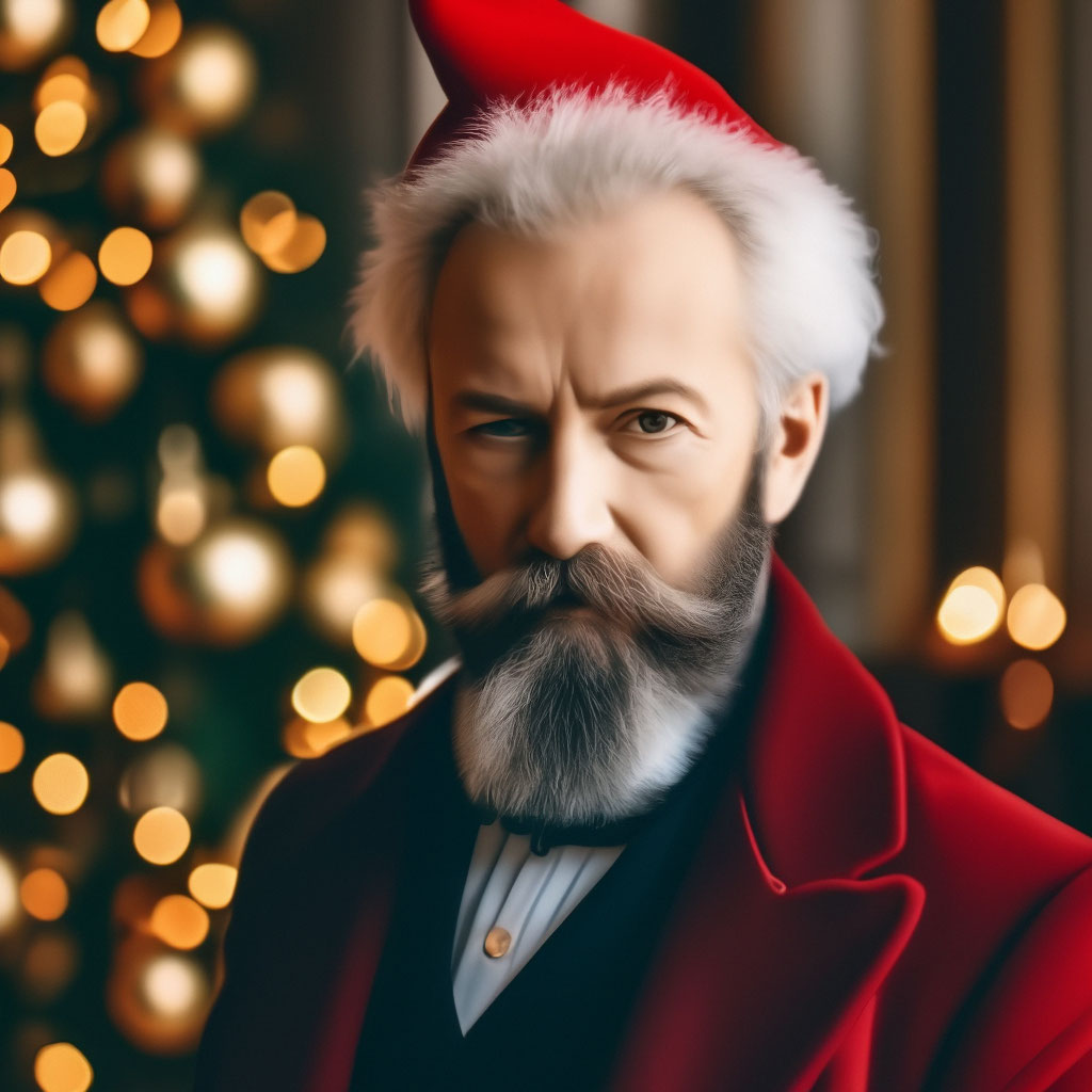 Замысел — портрет П. И. Чайковского в новогоднем колпаке — сочетает классику и праздничную игривость. Ниже — идеи, как воплотить его выразительно. Ключевые акценты образа Новогодний колпак. Выберите яркий цвет (красный с белым кантом, золотой, бордовый) и мягкую фактуру (бархат, флис). Можно добавить мелкий узор (снежинки, ёлочки) или помпон на кончике. Выражение лица. Сохраните характерную глубину взгляда Чайковского, но смягчите черты лёгкой улыбкой — так соединятся торжественность и праздничное настроение. Фон. Варианты: