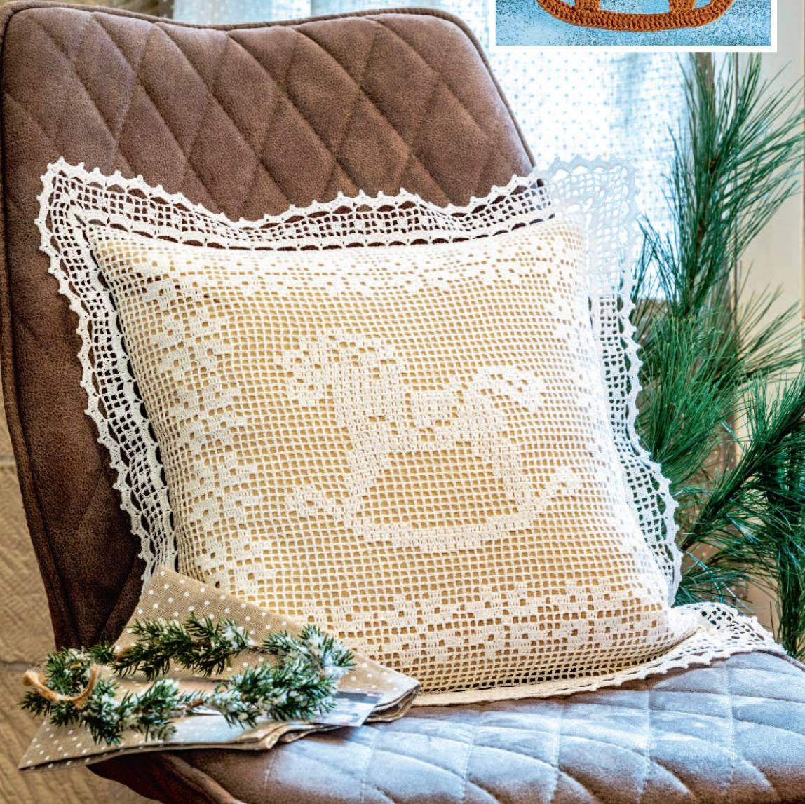 🎄Свяжите новогоднюю коллекцию декора для дома с символом наступающего года 🐎, филейное вязание крючком. Скатерть, панно и подушка.