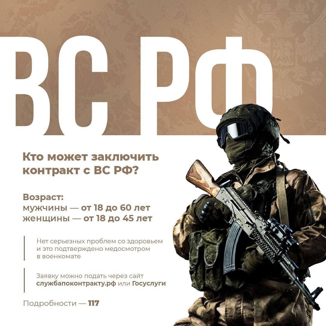 Все больше волгоградцев заключают контракт с ВС РФ 💯 Профессия военного — это высокооплачиваемая работа, возможность развить полезные навыки, получить опыт, знания и внести вклад в общее дело. Вы старше 18 лет и не имеете серьезных проблем со здоровьем? Контракт — ваш достойный выбор. Обратитесь в администрацию, военкомат или приходите по адресу г. Волгоград, ул. Советская, 25. Сразу после подписания выплачивают 2,1 млн, а в зоне СВО еще от 215 тысяч ежемесячно. Интересно? Подробности на сайте службапоконтракту.рф или по телефону 117. Подписывайся на наш канал в МАХ https://max.ru/id3438001187_gos