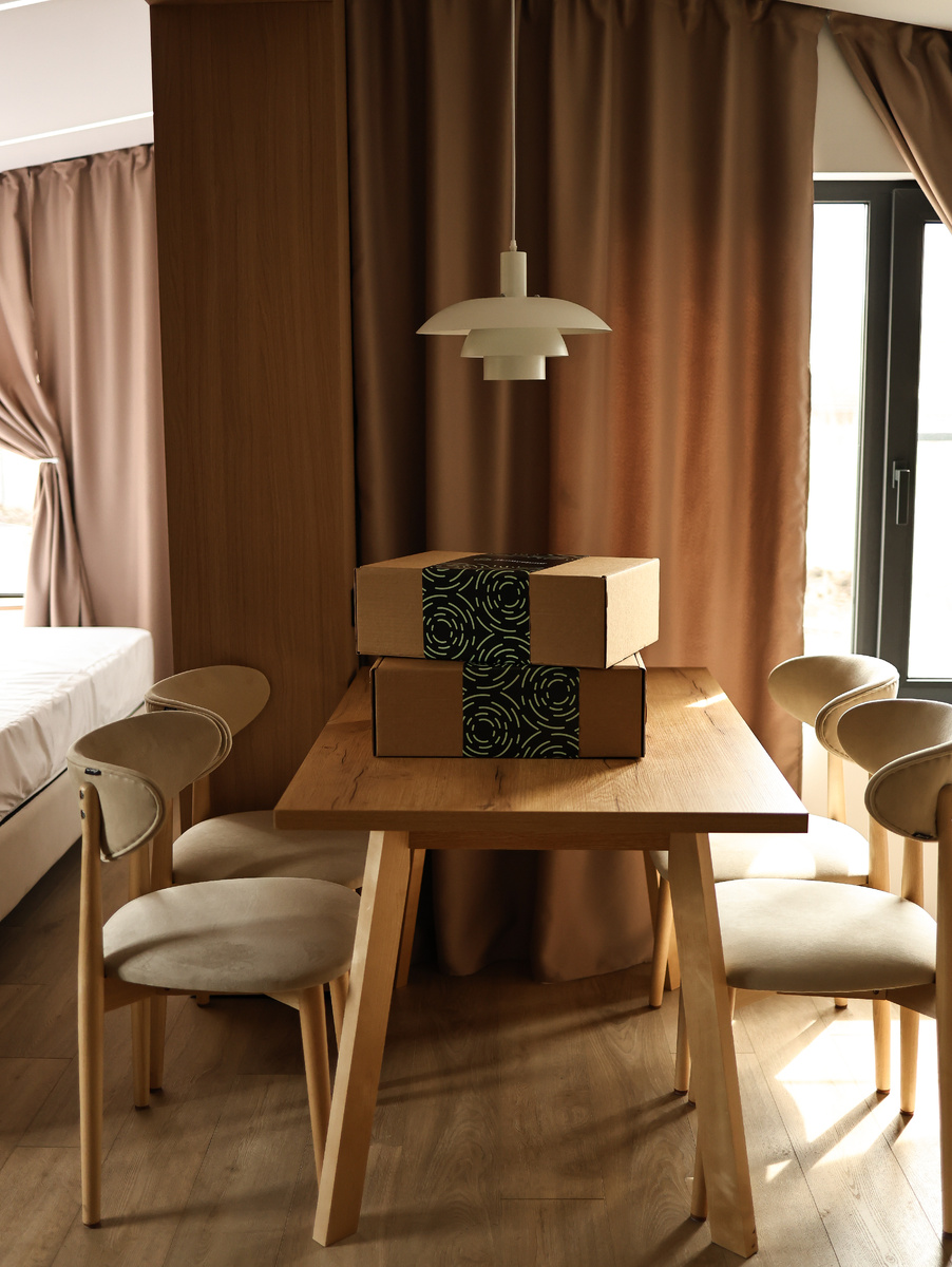 Хотим рассказать подробнее о том, что скрыто внутри сервис-боксов - той самой системе, благодаря которой Домшеринг держит планку сервиса без штата персонала и «ручной работы». Мы собрали в них всё, что действительно нужно для комфортного отдыха. Все боксы после каждого заезда уезжают на обработку, проходят полную замену и упаковку. Гостю приходит не «следы предыдущих», а полностью обновлённый комплект. Что внутри сервис-бокса: Постельное бельё. Наволочки, пододеяльники, простыни, подушки, одеяла - всё свежее, упакованное и готовое к заезду. Полотенца и тапочки. Полотенца для тела и для ног, одноразовые тапочки - чтобы с первых минут чувствовать чистоту и порядок. Гигиенические средства. Зубной и косметический наборы, шампунь, гель для душа, лосьон, мыло - полный набор, который закрывает базовые потребности. Кухонная и столовая посуда. Кастрюли, сковорода, разделочные доски, половники, шумовки, ножницы - всё, что нужно для обычной готовки без компромиссов. Столовые приборы и посуда. Та