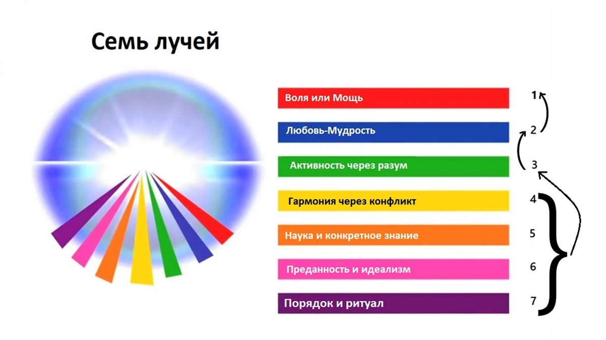 Стоит пересмотреть наше понимание семи лучей, управляющих всеми нами. У нас есть три основных луча (1-3) и четыре вспомогательных (4-7). Эти четыре второстепенных луча в конечном итоге сливаются в 3-й луч. Эта комбинация затем сливается со 2-м и 1-м лучами. Эти лучи не приходят к нам напрямую с 1-го Плана Материи, где обитают могущественные монады, питающие энергией всю Вселенную. Эти семь лучей фильтруются через тело Солнечного Логоса, функционирующего на 2-м луче. Я подозреваю, что они фильтруются еще и через более развитые тела. Итак, какой бы луч вы ни рассматривали, он окрашен 2-м Космическим лучом Любви и Огня. Для нас здесь, на Схеме Земли, это еще более тонко, потому что энергия, исходящая от Солнечного Логоса, принимается Планетарным Логосом, который функционирует на 3-м луче. Ещё один фильтр, который следует учитывать, прежде чем любой из этих семи лучей проявит себя в нас и нашем окружении.