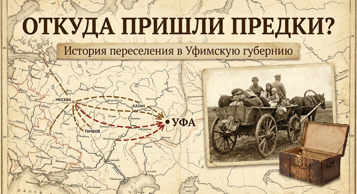 Когда мы спрашиваем клиентов: «Откуда родом ваши предки?», чаще всего слышим уверенный ответ: «Мы местные, коренные! Всю жизнь жили в этой деревне под Уфой». Но когда мы открываем архивы, выясняется удивительное. Прадед, которого считали местным старожилом, на самом деле приехал сюда в 1908 году на телеге, груженной скарбом и детьми. Уфимская губерния всегда была гигантским «плавильным котлом». Если вы думаете, что ваш род жил здесь вечно — с вероятностью 50/50 вы ошибаетесь. Великое переселение народов XX века В начале прошлого века, во времена Столыпинской аграрной реформы, Российская империя пришла в движение. В центральных губерниях крестьянам катастрофически не хватало земли. А здесь, на Урале и в Поволжье, просторы были бескрайними. И люди поехали.