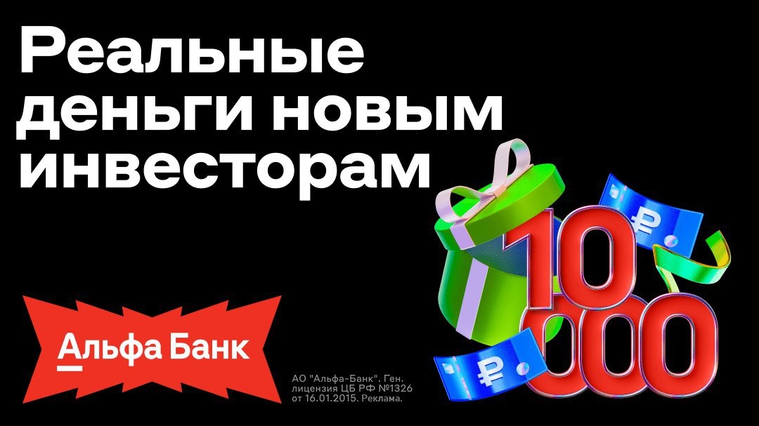 🔺 Альфа-Инвестиции: до 10 000 рублей за инвестиции ...условия немного поменяли ⚡️ Альфа-Инвестиции продлили акцию за открытие брокерского счета: новичкам за оформление брокерского счета можно заработать до 10 000 руб. за регулярные покупки по БС в течении 5 месяц. Как это работает: 🟥 С 8 декабря по 15 января 2026 года открыть брокерский счёт по этой ссылке. Не ИИС, не Инвесткопилка. 🟥 В течение 5 месяцев делать покупки ценных бумаг: от 1000₽ в первый месяц, 2000₽ - второй, 3000₽ - третий, 4000₽ - в четвертый и от 5000₽ в пятый месяц. Первый месяц можно сделать до 31.12 ИЛИ до 15.01.26. От этого зависит ваш первый месяц (декабрь или январь). 🟥 За это подарят 1000, 1000, 1000, 1000, 6000 – в сумме 10 000₽ за 5 месяцев подряд. 🟥 Выплата — на текущий счёт в Альфе или на БС до 15 числа каждого месяца. ◻️ Текущий счет должен быть открыт до 31.12.25. Для этого можно заказать Альфа-Карту с бонусом до 2 200 руб. ☝️ На тарифе «Инвестор» комиссия 0,3% от сделки. Если не хотите рискова