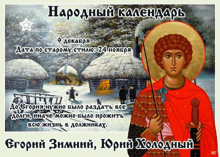 Во вторник 9 декабря 2025 года по народному календарю отмечается Юрьев день или день Егория Холодного. Посвящен праздник годовщине освящения храма Георгия Победоносца, находящегося в Киеве. ❇️ПРИМЕТЫ ✔️Если выпало много снега, то к маю всё растает и травой порастёт. ✔️День холодный – зима морозной будет. ✔️Если недалеко от людского жилища воет волк, то грядёт похолодание. ✔️Увидеть в этот день иней – к хорошему урожаю. ✔️Северный ветер дует – к заморозкам. ❌ЧТО НЕЛЬЗЯ ДЕЛАТЬ ✔️В Юрьев день запрещалось ходить на охоту, чтобы не навлечь несчастья на семью. ✔️Не рекомендовалось отправляться в дальнюю дорогу. А если путешествие нельзя было отменить, нужно было заказать молебен о его благополучном завершении. ✔️В этот день запрещалось лежать и бездельничать. Чтобы заслужить благосклонность святого Георгия, нужно трудиться, полагали предки. К Егорию старались раздать все долги, чтобы грядущий год был удачным. ✔️Отказывать в помощи, особенно соседям и знакомым. Иначе человек мог потеря
