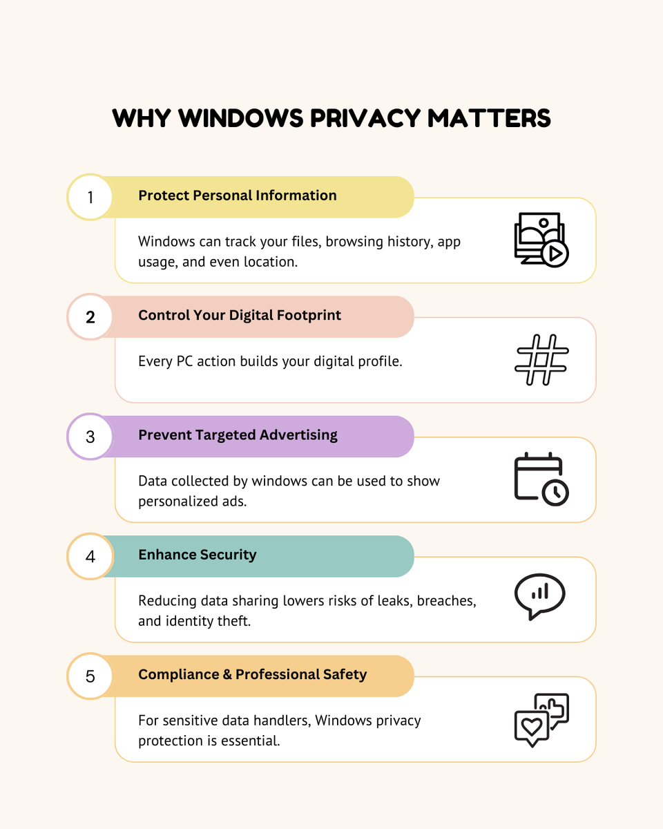 Игнорирование настроек приватности в Windows подвергает вас серьёзным угрозам, затрагивающим не только устройство, но и вашу личную безопасность, финансы и свободу.