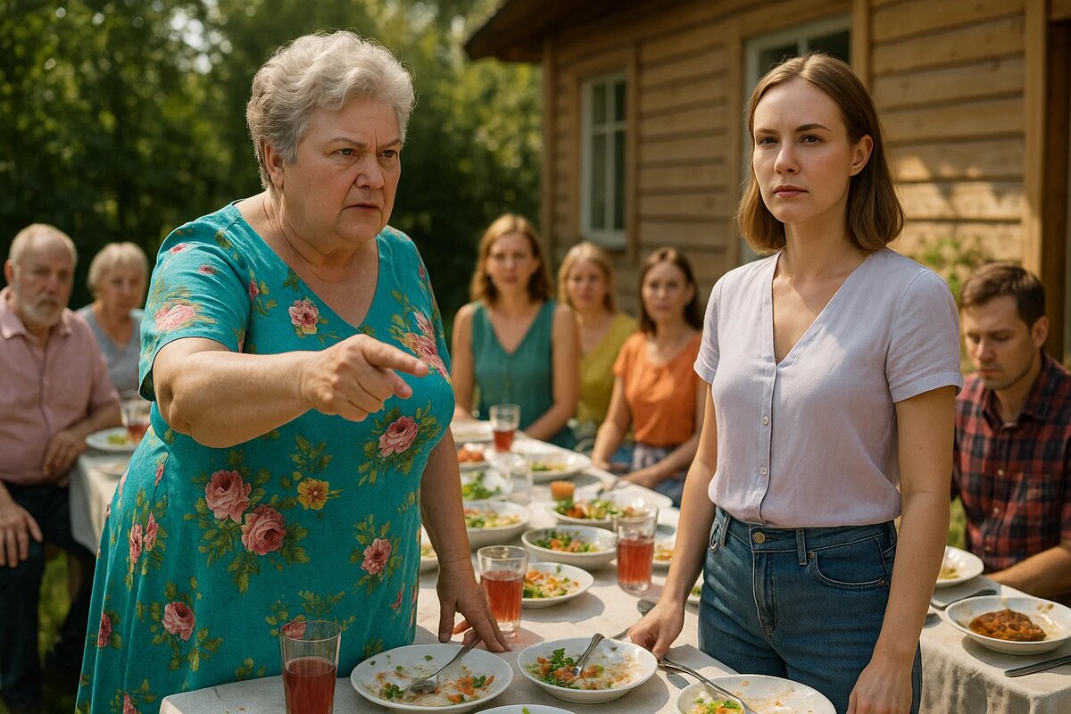 Вера подняла глаза от тарелки. Двадцать пять человек за столом замерли. Жара стояла такая, что даже мухи не жужжали — просто ползали по краю салатницы. Вера вытерла ладони о джинсы и медленно встала.