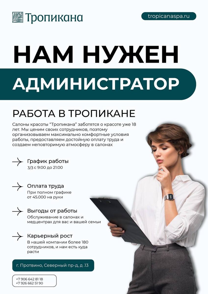 Ищем Администратора в Салон Красоты 🌿 Описание вакансии: Мы приглашаем энергичного и внимательного администратора присоединиться к нашей дружной команде салона красоты. У нас уютная атмосфера, профессиональные мастера и заботливое отношение к каждому клиенту. Если вам близка сфера красоты и комфорта, мы ждем именно вас! ✨ Обязанности: Встреча гостей, создание приятной атмосферы; Консультация клиентов по услугам и процедурам; Запись на процедуры, ведение клиентской базы; Поддержание порядка в салоне; Обработка входящих звонков и сообщений; Работа с кассовым аппаратом и документацией. 💃 Требования: Приятная внешность и доброжелательность; Грамотная речь и умение общаться с людьми; Ответственность и аккуратность; Опыт работы в сфере услуг приветствуется, но не обязателен; Готовность развиваться вместе с нами. 📅 График работы: Сменный режим — 3/3. 🔥 Преимущества: Дружелюбный коллектив и комфортная рабочая обстановка; Возможность профессионального роста и обучения новы