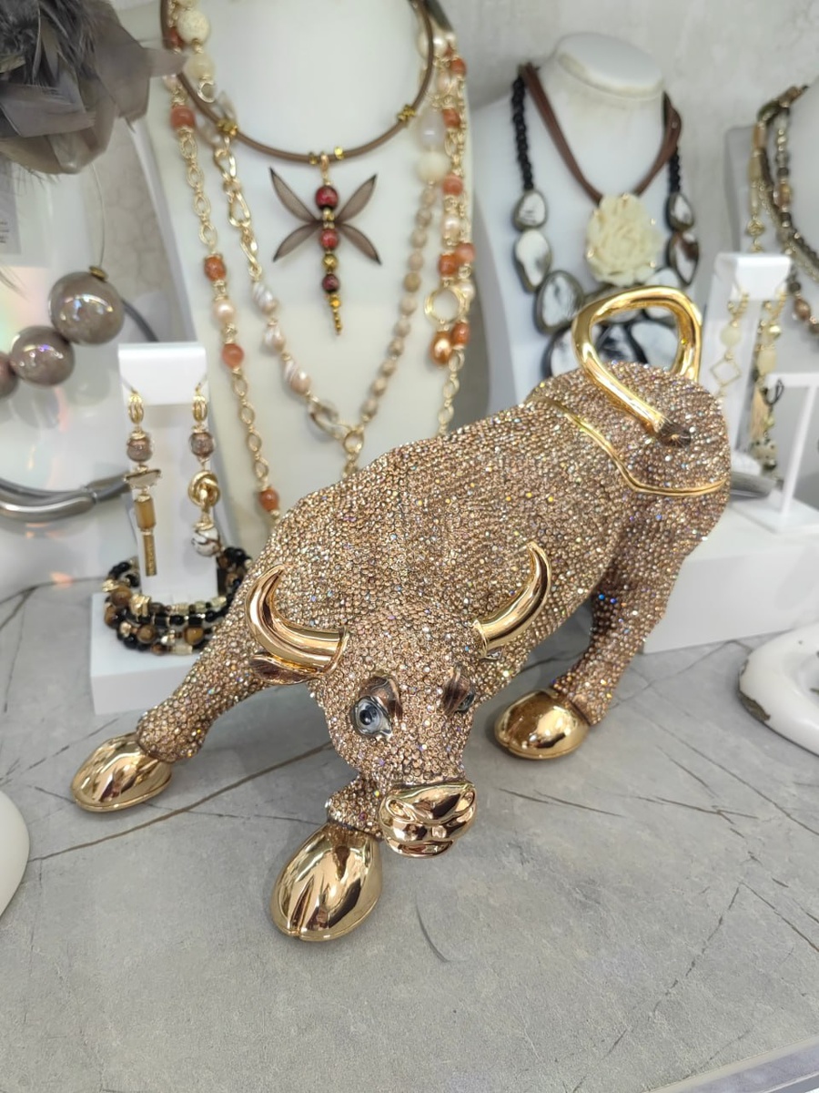 ✨ КРИСТАЛЛИЧЕСКАЯ ЛЕГЕНДА: ШКАТУЛКА, КОТОРАЯ ХРАНИТ СВЕТ ВРЕМЕНИ Дорогие хранительницы прекрасного! Сегодня мы представляем аксессуар для хранения, скульптурный шедевр, в котором встречаются сила земли и магия света. Шкатулка «БЫК» — это диалог между древним символом и современным ювелирным искусством. 🦬 СИМВОЛ, ПОКРЫТЫЙ ЗОЛОТОМ И СВЕТОМ Каждая деталь этой шкатулки — дань уважения природной мощи: - Позолоченные рога — как лучи восходящего солнца - Золотые копыта — опора, достойная королевских сокровищ - Позолоченный хвост — изящный финал совершенной формы - Каждая выпуклая деталь — тронута золотом, создавая объём и глубину 💎 МОРЕ СВЕТА В КАЖДОМ КРИСТАЛЛЕ Более 500 кристаллов Swarovski, собранных вручную, создают эффект живой акварели: - Переливы от лазурного до изумрудного - Игра света, меняющаяся в течение дня - Текстура, которую хочется рассматривать бесконечно 🌟 ШКАТУЛКА, КОТОРАЯ СТАНОВИТСЯ НАСЛЕДИЕМ: ▫️ Предмет коллекционирования — для ценителей limited edition ▫️ Объект инт