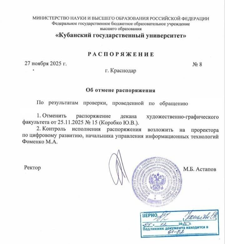 🇷🇺 Студенты КубГУ добились отмены принудительной установки мессенджера MAX Студенты художественно-графического факультета Кубанского государственного университета одержали победу. Ранее декан факультета запретил использовать любые мессенджеры, кроме MAX, для учебных вопросов, угрожая дисциплинарными взысканиями. ✊ После студенческих жалоб проректор КубГУ по цифровому развитию признал распоряжение декана незаконным. Ректор вуза отменил его, подтвердив добровольность регистрации на платформе и возможность использовать любые другие сервисы. ✅ #КубГУ #ПраваСтудентов #МессенджерMAX °Telegram • Zen • Bastyon° ✒️Предложить новость