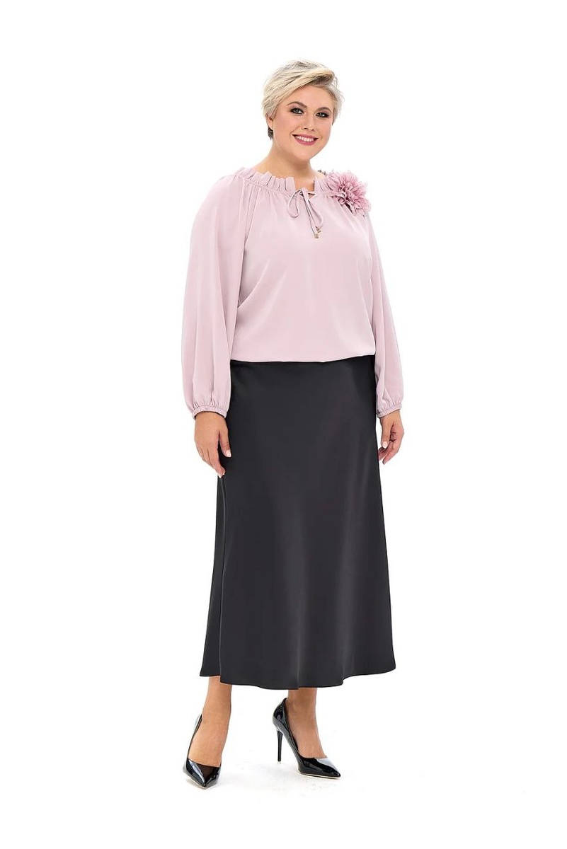 Прекрасная блуза с нежным розовым оттенком — это воплощение романтичности и свежести. Она способна создать праздничное настроение в любой день. Праздничная чёрная атласная юбка незаменима в гардеробе. размеры 48-64.