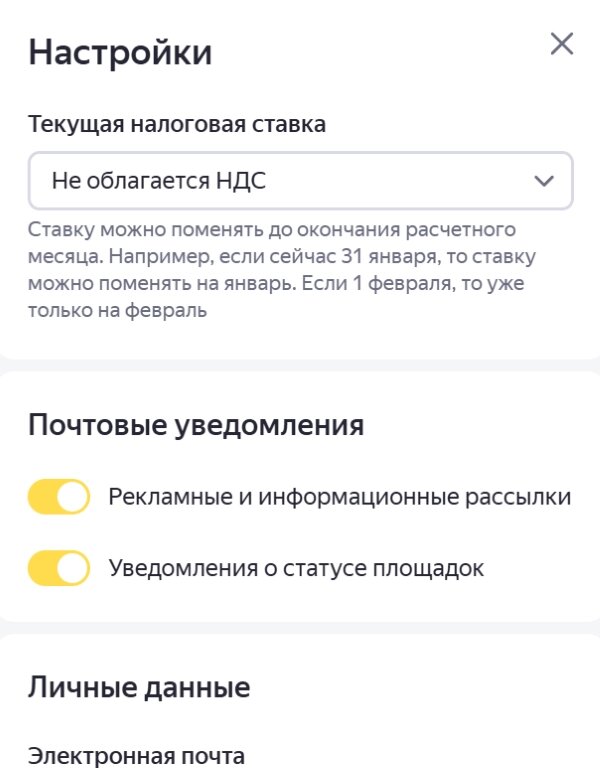 Личный кабинет Яндекс Дистрибуции привязан к вашему Яндекс ID. Это удобно (единый вход), но накладывает ответственность. потеря доступа к почте означает потерю доступа к деньгам. Профиль и Контакты В разделе «Настройки» хранятся данные, которые используются для связи с вами. Что важно проверить. Email для уведомлений. По умолчанию это почта вашего аккаунта. Если вы используете этот ящик только для регистрации, а рабочую переписку ведете в другом месте - обязательно укажите актуальный email. Можно настроить уведомления Юридические данные партнера Нюанс. Изменение данных в профиле Дистрибуции не меняет ваши юридические реквизиты в договоре. Если есть юридические измения - это делается в разделе «Финансы», или в чате с поддержкой. Безопасность аккаунта Так как Дистрибуция - это деньги, ваш аккаунт становится целью для взлома. Двухфакторная аутентификация (2FA). Настройте вход по смс или через приложение Яндекс Ключ в настройках вашего основного Яндекс ID (Passport). Даже если злоумы