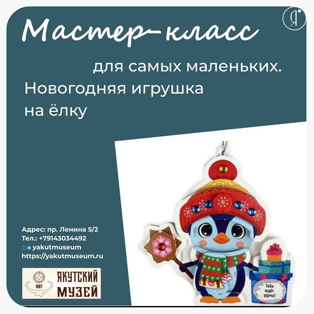 Детские предновогодние мастер-классы в Якутском музее #МК В Якутском музее продолжается серия творческих занятий для детей. Ваш ребёнок сможет своими руками создать праздничный сувенир, послушать сказки и узнать много интересного. 🤩 Расписание на неделю: 🤩ВТОРНИК (12:00, 15:00): «Значки-снеговички» (брелоки из природных материалов) + загадки и призы. Цена: 250 руб. 🤩СРЕДА (12:00, 15:00): Сборка и роспись деревянной кормушки + лекция о зимующих птицах Якутии. Цена: 500 руб. 🤩ПЯТНИЦА (12:00, 15:00): «Зимние узоры» (подставка в технике алмазной мозаики) + сказка о Быке Холода. Цена: 350 руб. 🤩СУББОТА (12:00): Экскурсия-сказка «Колобок в зимнем лесу» (от 3 лет) + аппликация. (13:00) - «Зимние узоры» (алмазная мозаика). Цена: 350 руб. Подарите детям праздничное настроение и новые знания! 🎄 🤩пр. Ленина, 5/2 Запись обязательна: +7 914 303 44 92 Online Якутия | Ждем вас в МАХ