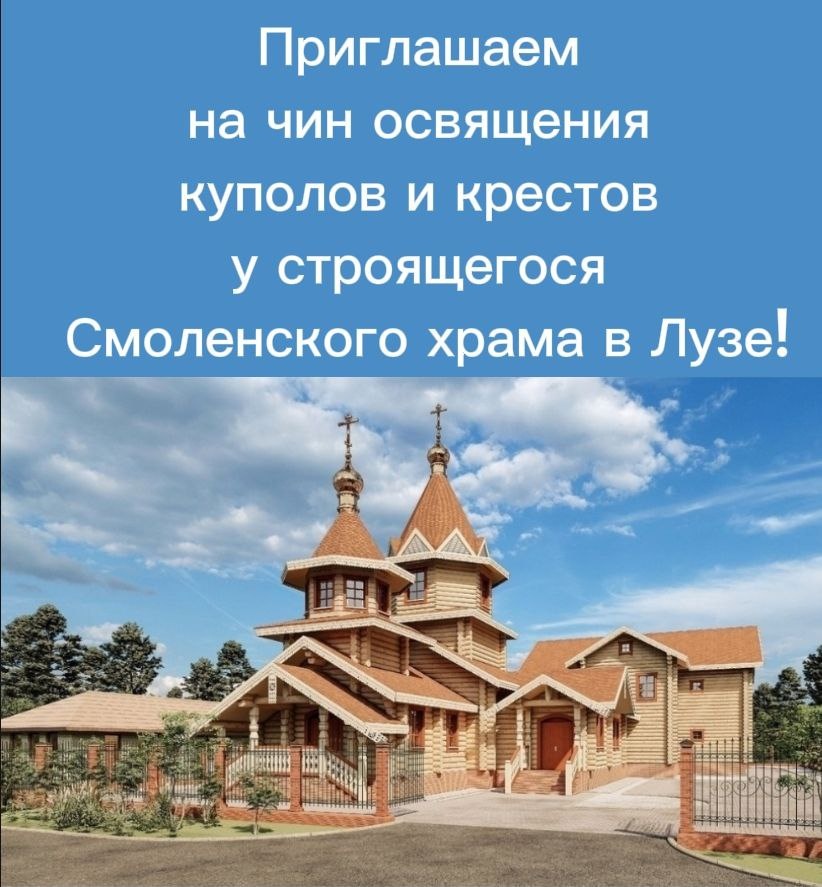 Дорогие братья и сестры! С большой радостью сообщаем, что 11 декабря 2025 года, в 11:00, состоится молебен с чином освящения куполов и крестов, и их установка на строящийся Смоленский храм. Чин освящения совершит благочинный Северного округа Яранской епархии архимандрит Владимир (Дяченко). Всех желающих приглашаем на это торжественное событие. Адрес: г. Луза ул. Ленина, 80.