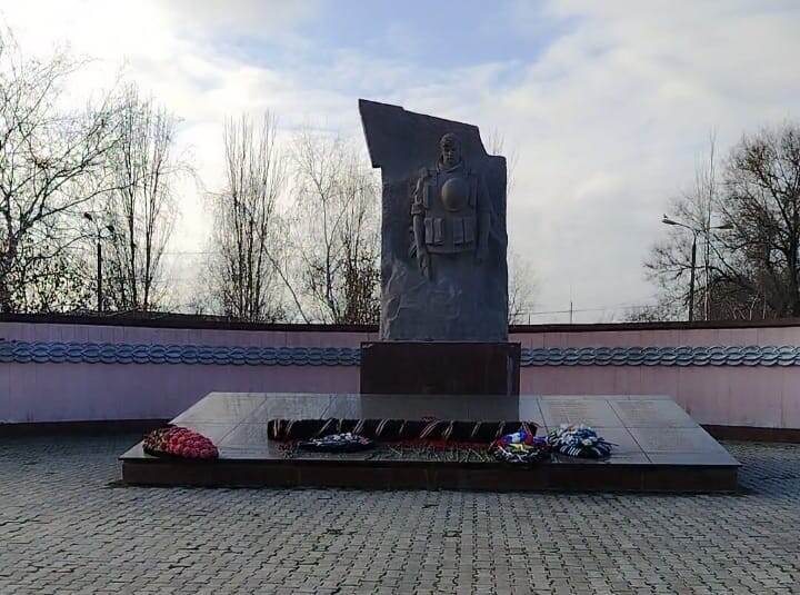 Памятник воинам Волгоградского гарнизона, погибшим в боях на территории Чечни был установлен 1 ноября 1996 года на проспекте Жукова в Дзержинском районе Волгограда. Памятник расположен на территории военного городка, но он доступен для всех желающих почтить память воинов. Инициатором создания памятника выступил генерал-лейтенант Лев Яковлевич Рохлин, средства выделены воинской частью гарнизона. Авторы проекта: заслуженный художник России скульптор О.А. Дедов и художник-любитель В.Я. Лимов. В центре композиции - фигура бойца в бронежилете, склонившего голову в знак скорби по павшим товарищам. Лицо солдата скульптор воссоздавал по фотографии молодого лейтенанта-танкиста из Волгограда Сергея Анатольевича Калисецкого, погибшего в Чечне 1 января 1995 года. У подножия памятника находятся мраморные плиты, на которых изначально были высечены имена павших воинов – всего 144 фамилии бойцов 8-го гвардейского армейского корпуса. Через несколько лет памятник реконструировали, и на плитах появи