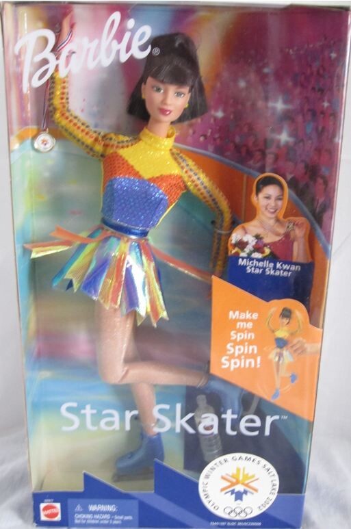 Добрый день. Молд датирован 2000-м годом. Однако массовость, так сказать, обрёл в 2002-м. "В 2002 году у Барби появились две новые подруги: Леа и Кайла. Леа - азиатка, а Кайла -латиноамериканка. У обеих один и тот же скульпт лица, но разный цвет кожи и роспись лица. В эпоху Cali girl азиатка Леа стала смуглой и похожей на латиноамериканку. Позже она снова стала бледной и похожей на азиатку. Кайла почти исчезла после 2006 года, но Леа по-прежнему остаётся подругой Барби." Но всё же первая кукла на этом молде не была, ни Леей, ни Кайлой. Она была Мишель. Кукла из серии 2001 Olympia Star Skater Barbie, Asian. Портретка Мишель Кван. Если кто увлекается фигурным катанием, то это имя знает. Одна из "звёзд" золотой эпохи фигурного катания. Кукол было несколько. Все были посвящены легендарному выступлению Мишель. Блондинка и афро- как же без них. А вот азиатка вышла на новом молде Нет, портретного сходства нет. Вообще найти фото этой позитивной девушки без открытой улыбки- та ещё за