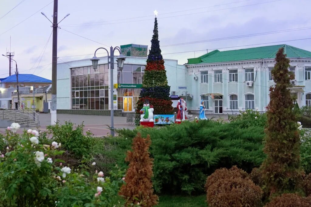 В Неклиновском районе начались приготовления к встрече нового, 2026, года. И хотя на газонах по-прежнему зеленеет трава, а на клумбах цветут запоздалые розы, на площади им. А. Береста с. Покровское уже установлена главная новогодняя елка нашего района. Ею успели полюбоваться жители и гости районного центра в выходные дни. Теперь к ней, к Деду Морозу, Снегурочке и другим сказочным персонажам, фигурки которых расположены рядом, снова будут приходить семьи с детишками, будут рассматривать елочку, ее игрушки, фотографироваться на память. Вот такой он у нас нынче противоречивый предновогодний декабрь. Фото С. Авдеенко.