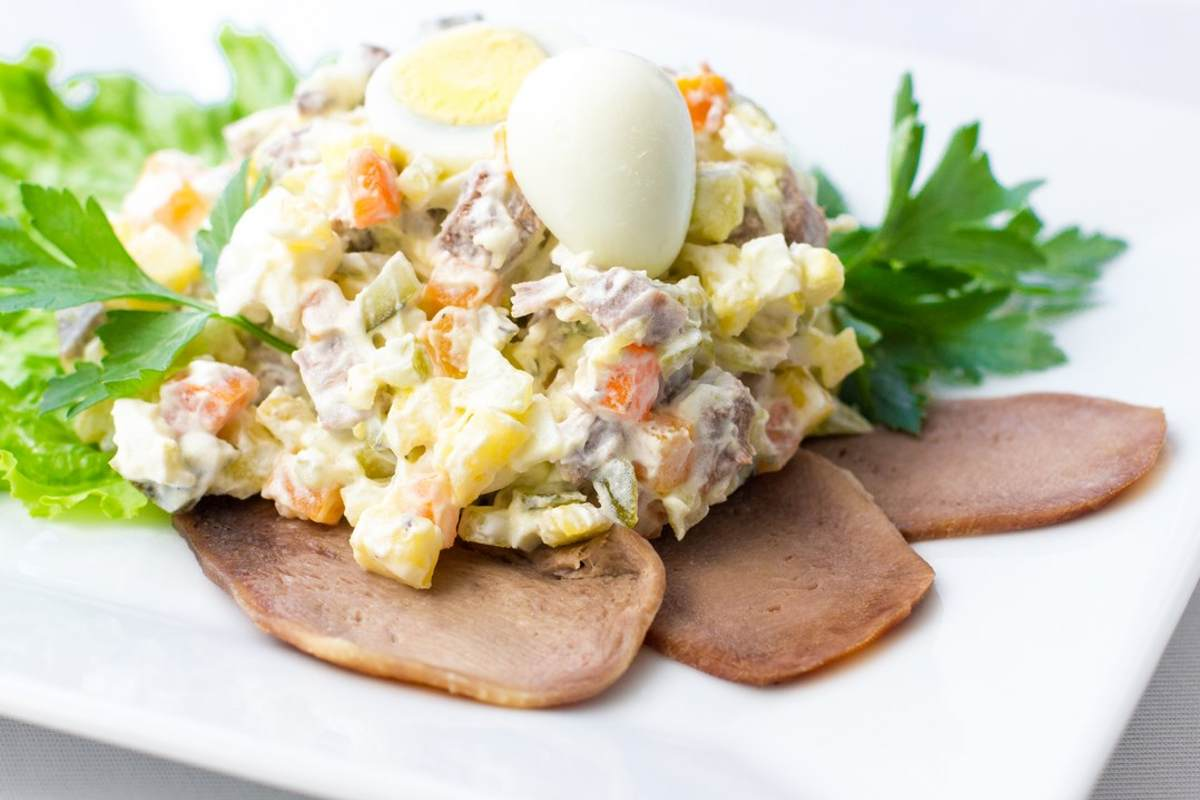 Говяжий язык — деликатес, который при правильном приготовлении становится нежным, сочным и идеально сочетается с овощами и классической заправкой Оливье. Такой вариант салата выглядит более празднично, обладает насыщенным вкусом и станет вашей «фишкой» на любом застолье.