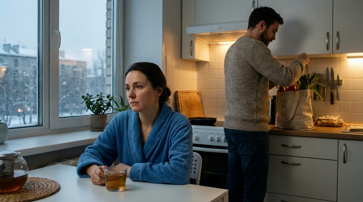 Ирина положила трубку, чувствуя, как внутри нарастает тревога — тихая, но неотвратимая. Павел уже ушёл на работу; она села за стол, уставившись в окно. Снег за ночь растаял, оставив серые лужи. Жизнь её — правильная, стабильная — вдруг показалась хрупкой, как этот лёд.