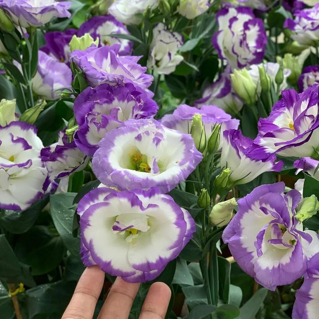 · «Рози» F1. Кустики высотой 20–25 см распускаются крупными (до 7 см диаметром) махровыми цветками. Цветы бывают белыми, лавандовыми, лавандово-синими, лиловыми, розовыми, одноцветными и с розовой каемкой. В открытом грунте выращивается как однолетник, а дома может прожить 2–3 года. Нарядная эустома привлекает бабочек и пчел.