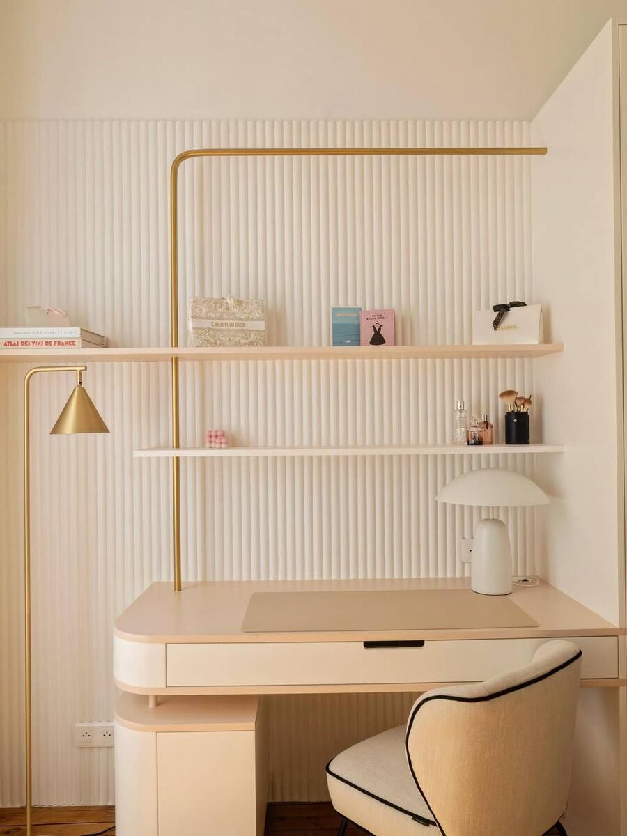 Рабочее место, которое помогает сосредоточиться 🤍 Вертикальный рельеф стеновой панели W110 создаёт чёткий ритм и визуальный порядок, оставляя пространство лёгким и спокойным. Никаких лишних акцентов — только спокойная палитра, свет и комфорт. ✨ Сохраните себе в закладки, чтобы не потерять идею оформления рабочей зоны